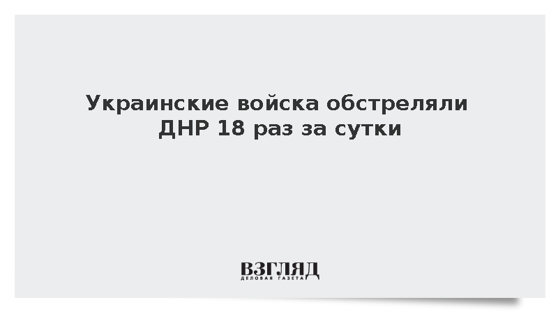 Украинские войска в течение последних суток восемнадцать раз обстреляли территорию Донецкой Народной Республики, сообщает РИА «Новости» со ссылкой на данные управления правительства ДНР по вопросам документирования военных преступлений Украины. Всего, по данным управления, было выпущено 56 боеприпасов. Обстрелы произошли на горловском направлении, что привело к ранениям трех мирных жителей.