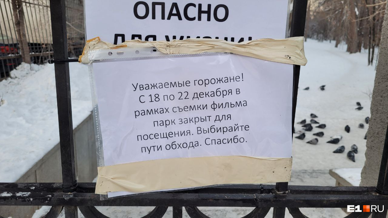 — Уважаемые горожане! С 18 по 22 декабря в рамках съемок фильма парк закрыт для посещения. Выбирайте пути обхода. Спасибо, — написано в объявлении.