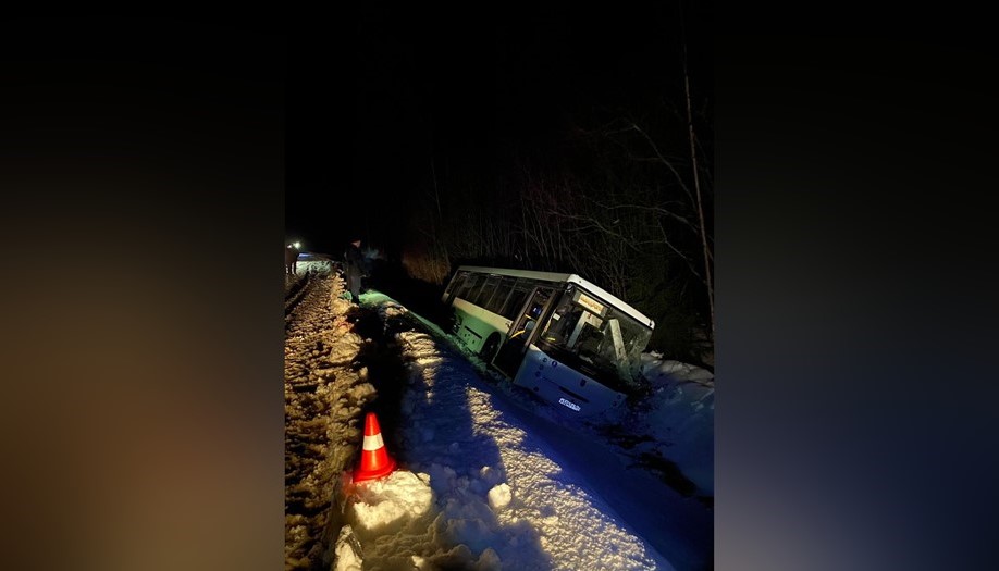 По предварительным данным, авария произошла минувшим вечером на дороге "подъезд к деревне Мандроги", когда 52-летний водитель автобуса "НефАЗ", занимавшийся служебной развозкой, не справился с управлением и съехал в кювет с левой стороны дороги.