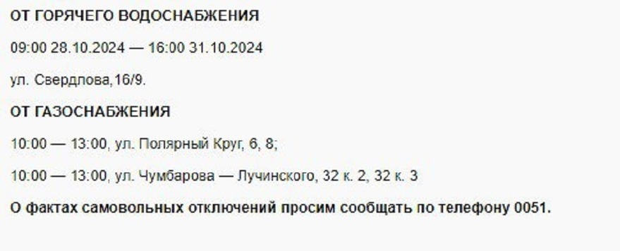 Помимо этого, 29 октября мурманчан ожидаются следующие отключения: