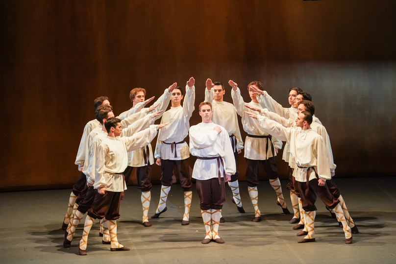 Балет Мариинского театра с этим справился и в «Свадебке», и в «Весне священной», воспроизведя поражающую зрителя до сих пор хореографию скрупулезно и адекватно. Конвульсивные движения избранницы-жертвы (Евгения Савкина), вводящей себя в экстаз и затанцевавшей себя до смерти, топот старейшин в медвежьих шкурах, а в «Свадебке» работа таких солистов, как Юлия Спиридонова, Никита Вронских, Максим Изместьев, Биборка Лендваи, Анастасия Асабен, Евгения Емельянова, Павел Михеев, Алексей Недвига, — все было выполнено остро, наполнено энергией и произвело на публику совершенно ошеломляющее впечатление. Как когда-то на зрителей начала XX века. Только привыкшая за столетия ко многим экспериментам публика не устроила такого с вызовом полиции скандала, как столетие назад.
