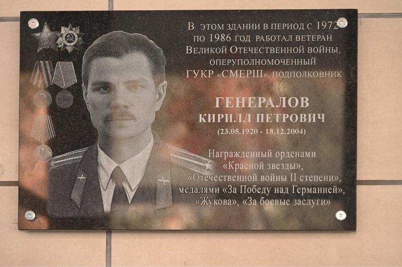 Открытие памятной доски было приурочено сразу к двум важным событиям — предстоящему юбилею Победы и годовщине основания легендарной советской спецслужбы «СМЕРШ». Именно 19 апреля 1943 года, согласно решению Советского правительства, была создана Главная военная контрразведка «Смерть шпионам!»