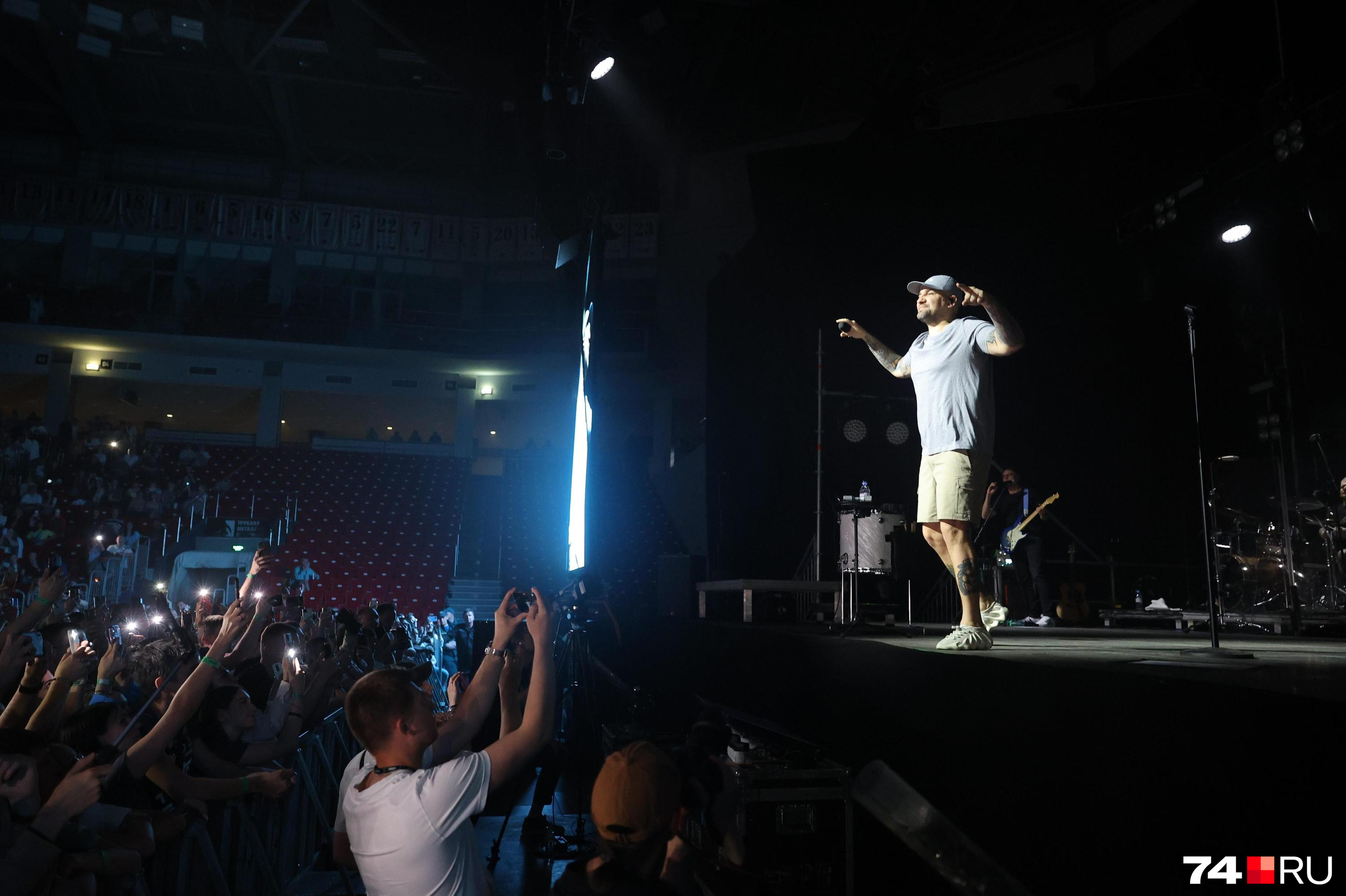 В конце праздничного дня под аккомпанемент симфонического оркестра пел Митя Фомин — как и в 2013 году, его выступление стало гвоздем праздничной программы.