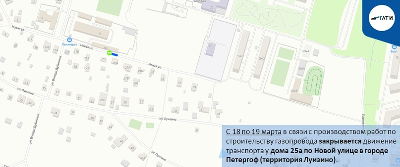 В Петергофе с 18 по 19 марта будет закрыто движение у дома 25а по Новой улице. Там ведутся работы по строительству газопровода.