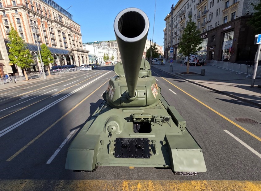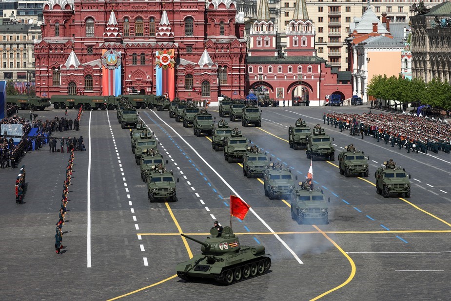 Следом за ними по брусчатке проехали различные бронеавтомобили, пусковые установки из состава системы ПВО С-400, бронетранспортеры БТР-82А, пусковые установки оперативно-тактического ракетного комплекса "Искандер-М", подвижные грунтовые ракетные комплексы "Ярс", ЗРК С-400 "Триумф". По традиции механизированную колонну возглавили танки Т-34-85, а последними на Красной площади появились колесные бронетранспортеры "Бумеранг".