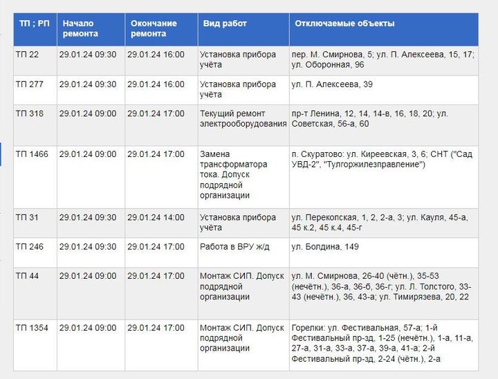 Причиной отключений света являются ремонтно-профилактические работы, которые предстоит вести энергетикам Тулы.