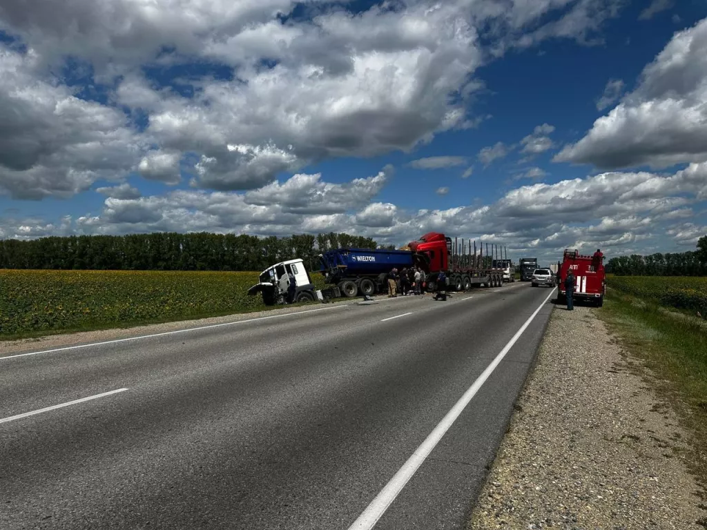 В Алтайском крае на трассе произошло жесткое ДТП с участием двух фур. Кадры с места происшествия появились в телеграм-канале «Катунь 24». Уточняется, что грузовые автомобили столкнулись на участке дороги между селом Поспелиха и Шипуново.