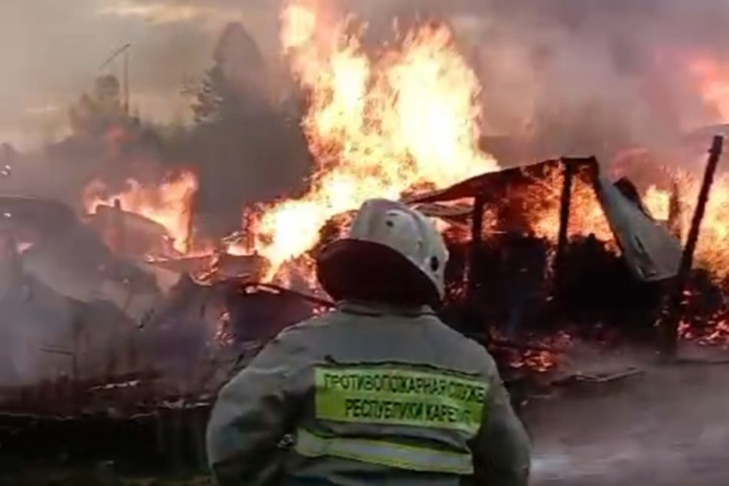 Ранее сообщалось, что появились фото пожара на четырех дачах под Петрозаводском.