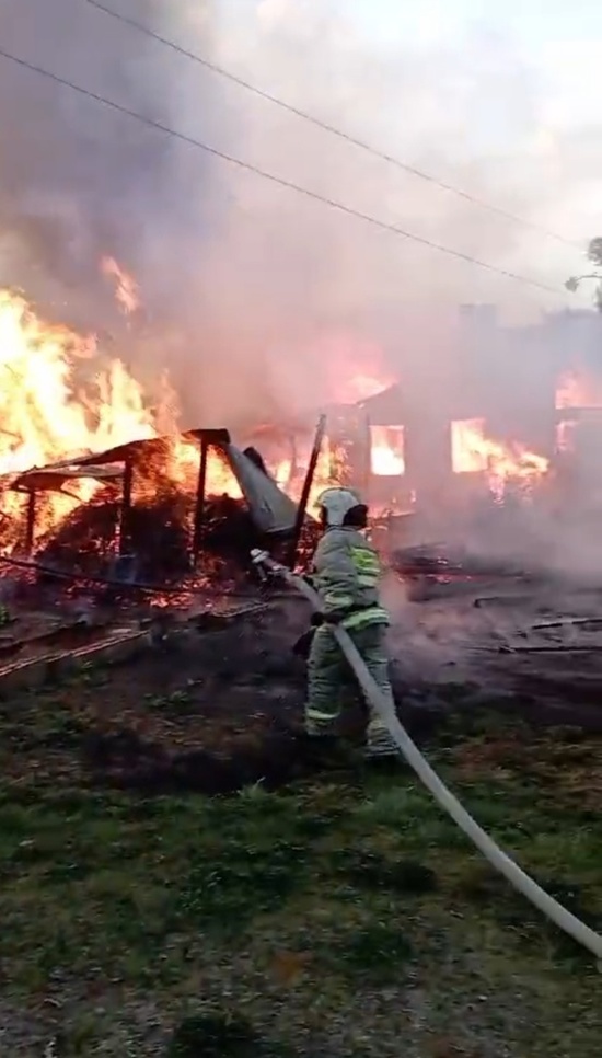 На место происшествия незамедлительно приехали спасатели. К этому моменту пламенем были охвачены уже два жилых дома, а также гараж и хозпостройка. Пожару был присвоен ранг повышенной опасности, огнеборцам понадобилось подкрепление.
