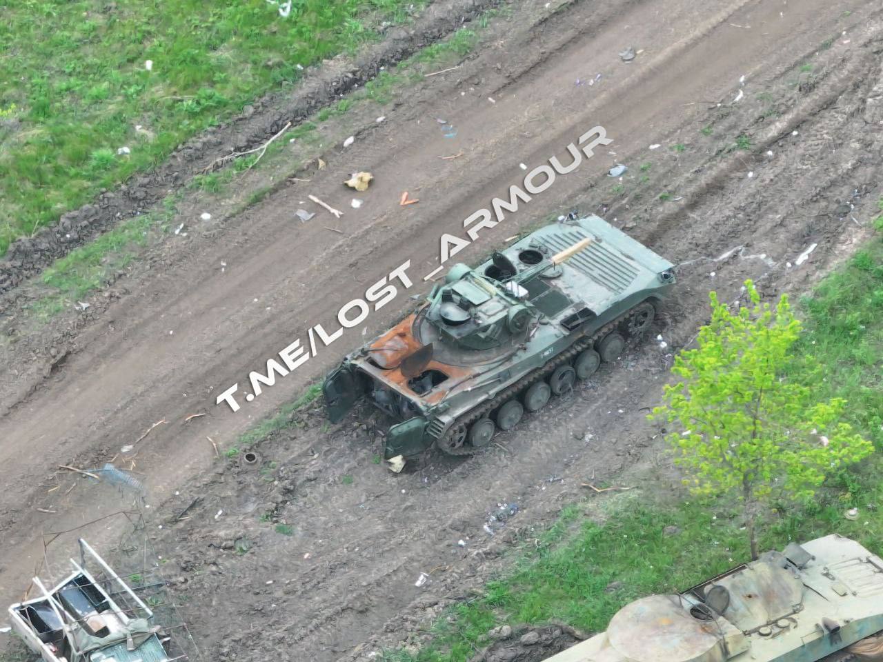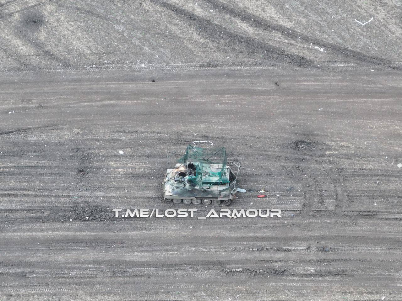 На кадрах видны одна УР-77, три бронеавтомобиля, один украинский БМП-1ТС и шведский БТР Pbv 302.