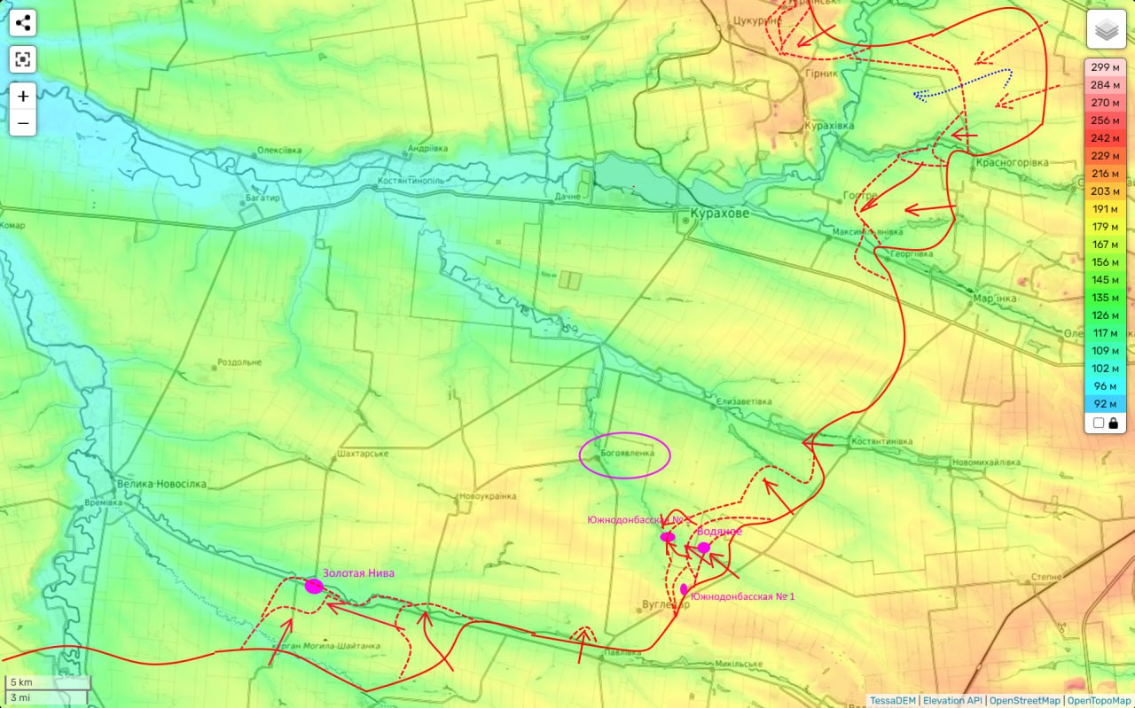 И одновременно с этим продолжаются попытки выйти полями на Богоявленовку. Несмотря на значимые здесь успехи накануне, задача эта еще далеко не решена.