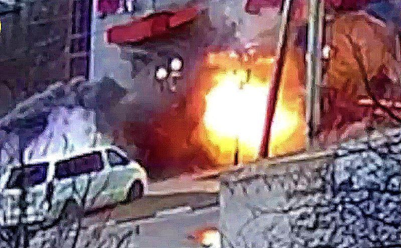 В сети появилась запись момента падения реактивного снаряда рядом с торговым центром в Белгороде.