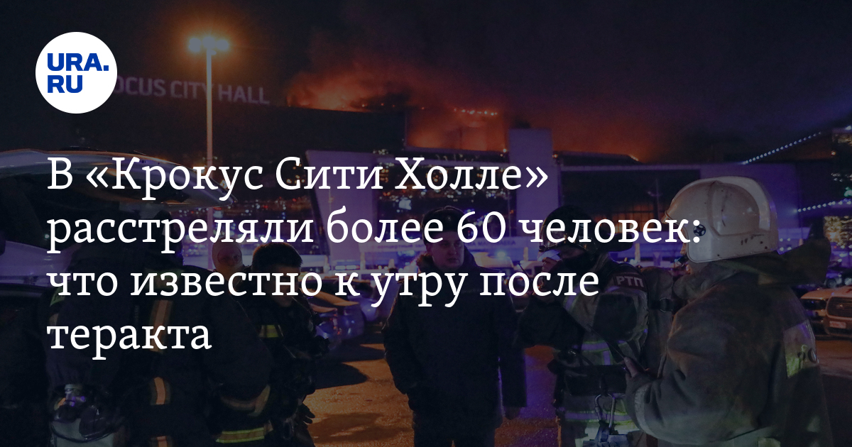 В результате теракта в «Крокус Сити Холле», погибли более 60 человек. Во время нападения террористы стреляли из автоматов Калашникова, после чего устроили в здании пожар. В Брянской области остановлено авто, похожее по ориентировке на машину предполагаемых террористов. Редакция URA.RU приносит глубочайшие соболезнования семьям погибших и желает скорейшего выздоровления пострадавшим. В материале собрана информация о трагедии к утру 23 марта.