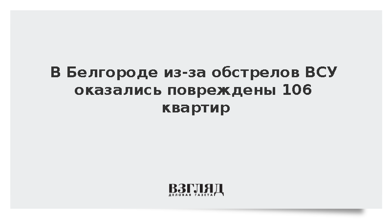 Различные повреждения получили 106 квартир в 22 многоэтажных домах Белгорода из-за обстрелов ВСУ 16 марта, сообщил губернатор области Вячеслав Гладков.