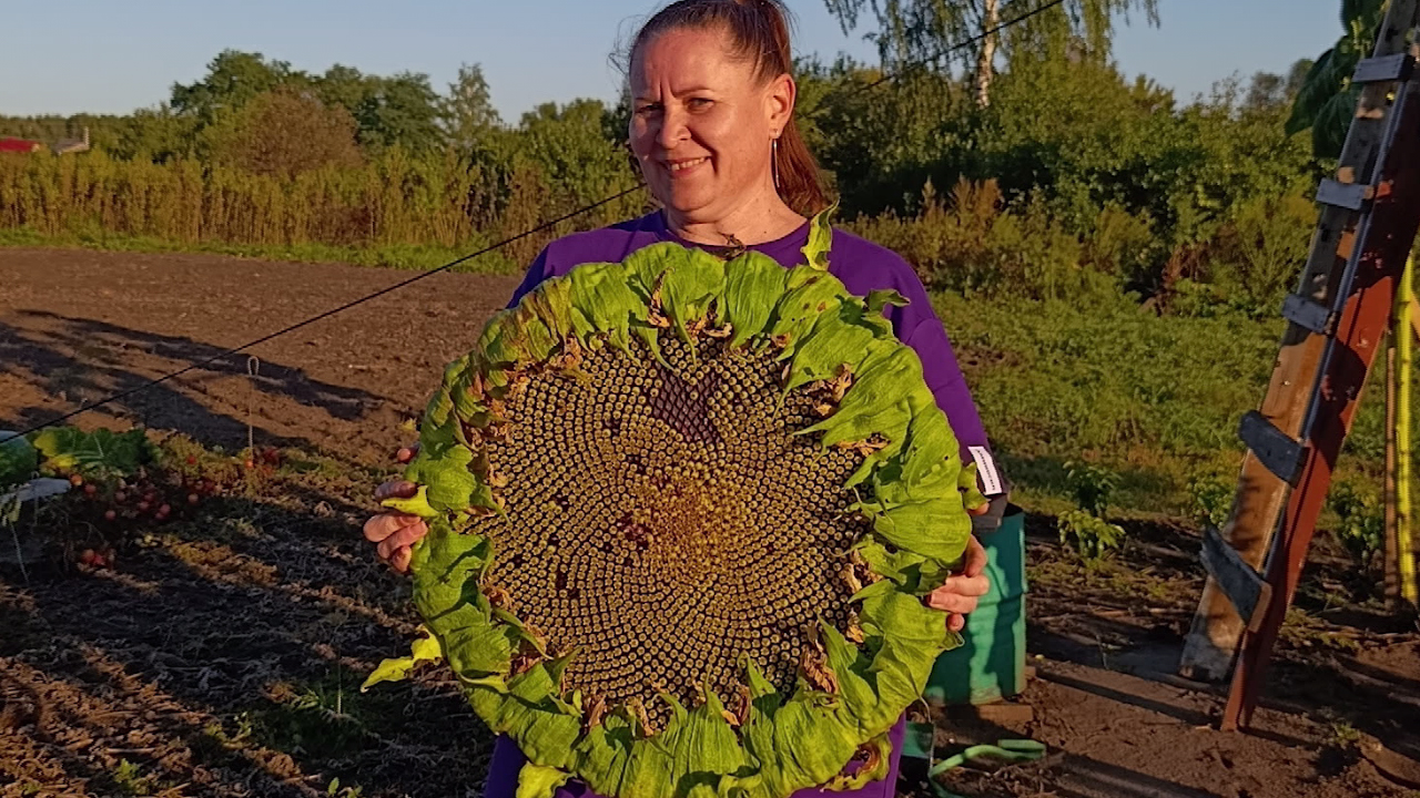 Соседи не завидуют, а ходят к ним на фотосессии. Размер на этих грядках важен всего второй сезон. Наталья по профессии учитель и вовсе не ботаник – математик. Но тут она их огородный рулевой. И вот плоды труда - подсолнечник, как мини-дерево. Без лестницы до семечек не дотянутся. Диаметр цветка – полметра. Старания уже отмечены Ботсадом МГУ – на конкурсе любителей такого же большого урожая. Подсолнух на четвертом месте по стране. А лук Ташаевых – десятый. Но даже так это уже не Чиполлино, скорее – папа Чиполлоне.