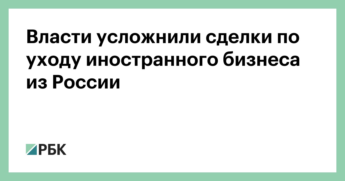 Добровольный взнос, который необходимо будет заплатить в бюджет при сделках по продаже российского бизнеса иностранцами, вырастет с текущих 15% до 35% от рыночной стоимости актива. Такое решение принято подкомиссией правительственной подкомиссии по контролю за иностранными инвестициями, сообщили три источника РБК, знакомые с его содержанием. Глава адвокатской коллегии «Николаев и партнеры» Юрий Николаев подтвердил эту информацию.