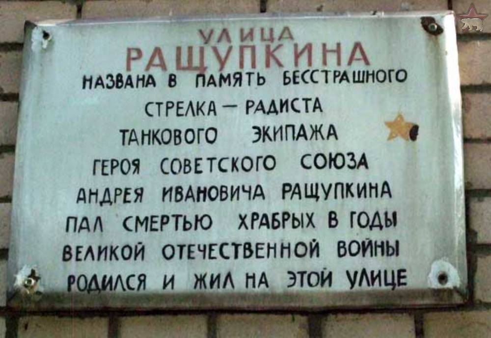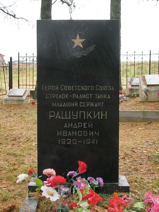 ...танк, в котором был младший сержант А. И. Ращупкин, был подбит и подожжён гитлеровцами. Командир танка и стрелок-радист сражались до последнего патрона, но не покинули горящую машину.