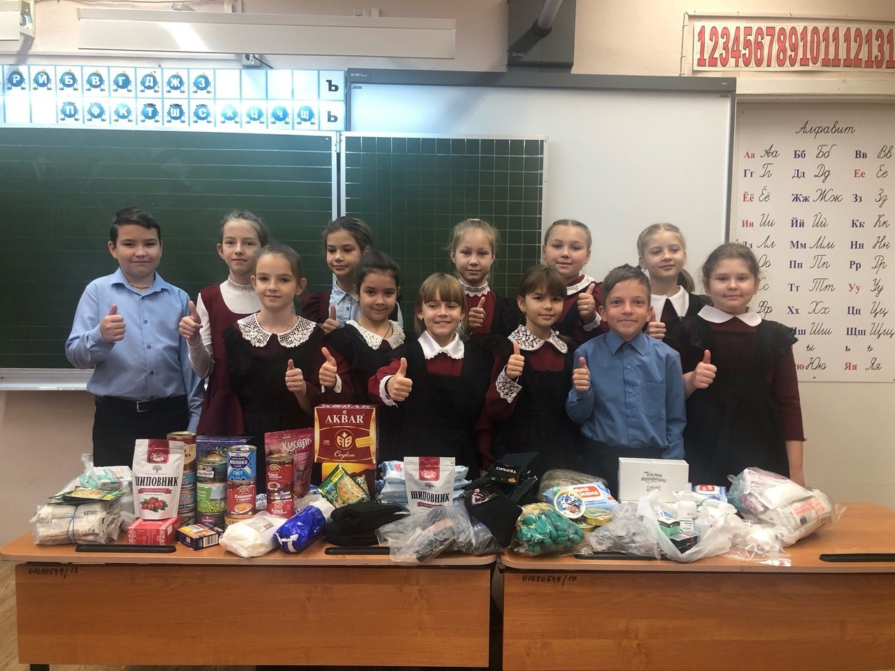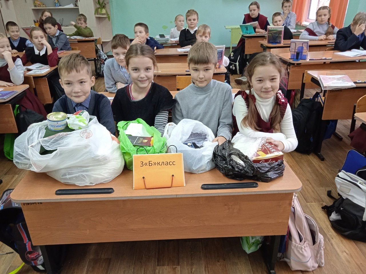 В рамках акции «Неделя добрых дел» в Муравьихинской средней школе Нижегородской области организован сбор помощи участникам СВО. Ребята принесли одежду, средства гигиены, продукты питания.