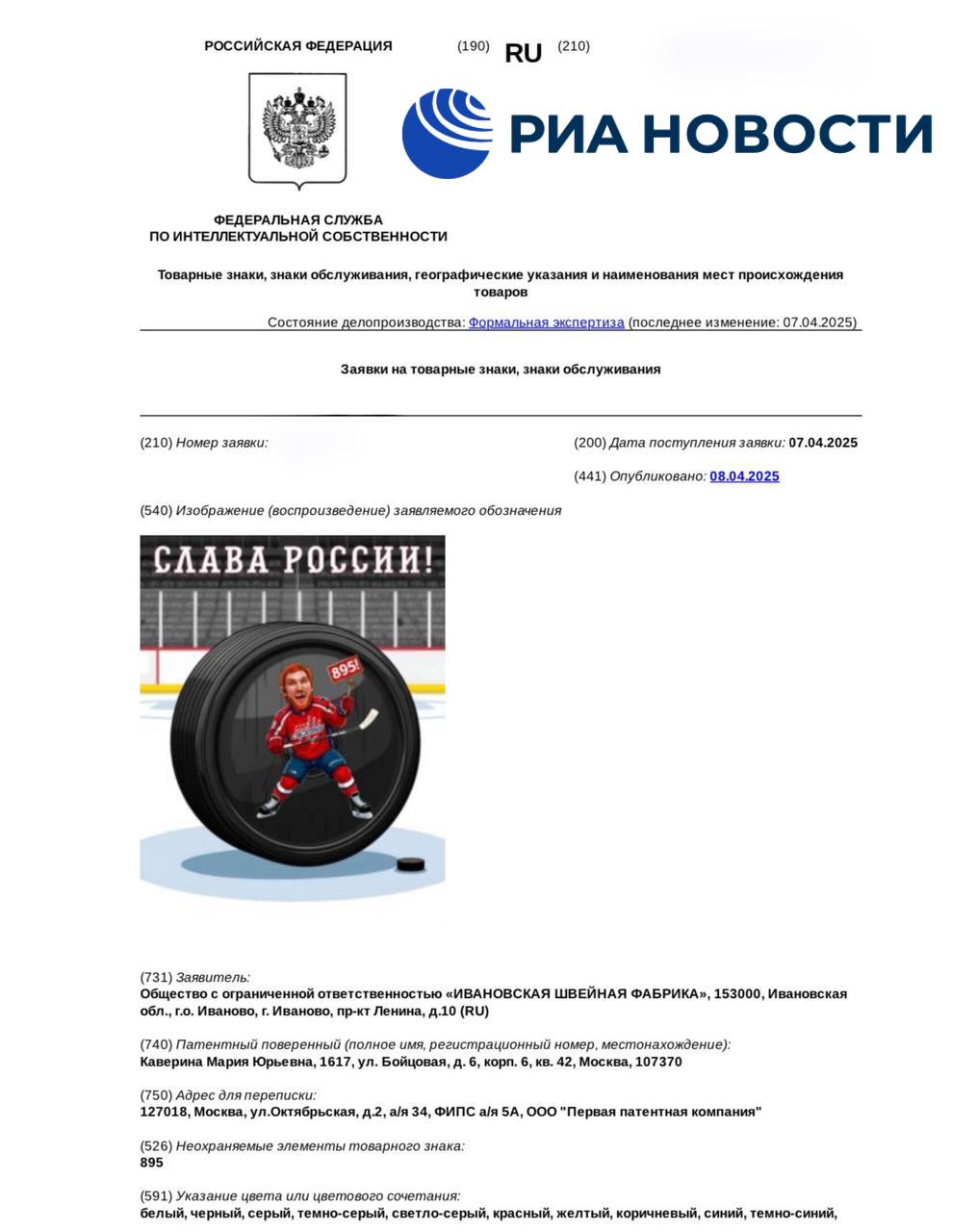 Ивановская швейная фабрика планирует зарегистрировать товарный знак с логотипом, который посвящен рекорду Овечкина, выяснило РИА Новости, изучив базу данных Роспатента.