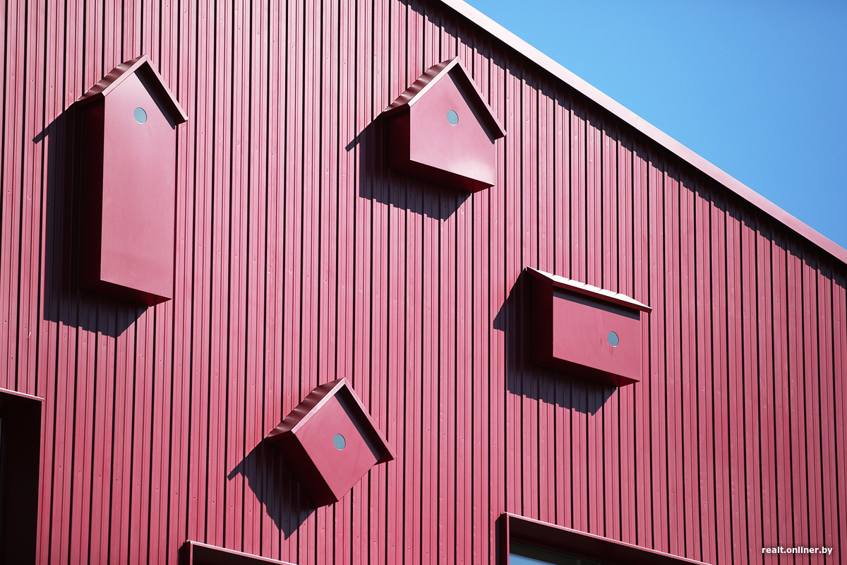 Как видим, планы не поменялись: в корпуса можно попасть через «скворечники», а вот главный вход выполнен в форме гнезда. «Скворечники», к слову, разбросаны и по фасаду. Живут в них птицы виртуальные, а не реальные, но тоже хорошо. В общем, достигнута максимальная концентрация всего птичьего.