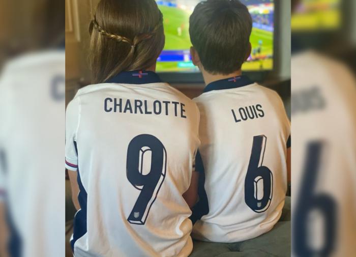 Принцесса Уэльская Кейт Миддлтон поделилась редкой фотографией, на которой запечатлены её дети — Шарлотта и Луи — в именных футболках сборной Англии. Они смотрели финальный матч Евро-2024 дома по телевизору.