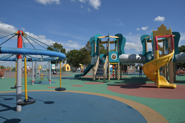 Так, во дворе на углу улиц Победы, Физкультурной и пр. Кирова, который был практически заброшенным и пустынным, появилось современные детские комплексы и спортивное оборудование.