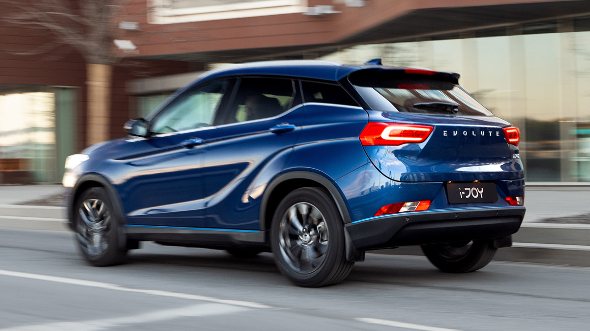 У Evolute i-Joy спереди стойки McPherson, сзади – полузависимая подвеска; привод исключительно передний. Этот паркетник оснащается электромотором, мощность которого составляет 163 л.с., а максимальный крутящий момент – 195 Нм. На разгон с места до «сотни» требуется 8,9 секунды, а его максимальная скорость равна 155 км/ч.