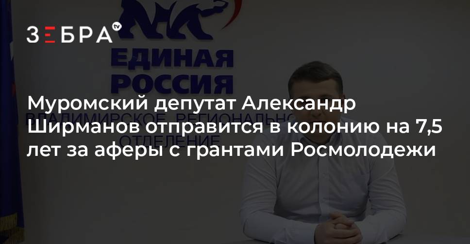 Муромский городской суд вынес приговор бывшему депутату Совета округа Муром от «Единой России» Александру Ширманову, которого обвиняли в мошенничестве и экономических преступлениях. Уголовное дело расследовал СУ СКР по Владимирской области. В ходе следствия установлено, что в декабре 2018 года один из руководителей ФГАУ «Ресурсный Молодежный Центр» (до 2015 года - ФГБУ «Международный детский центр») для хищения денег в рамках всероссийского конкурса молодежных проектов от Росмолодёжи организовал преступное сообщество. По плану, деньги хотели похищать, оформляя фиктивные заявки на реализацию проектов и выдачу грантов на участие в молодежных конкурсах.