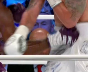 Однако без скандала не обошлось: в пятом раунде Дюбуа сразил Усика на настил ударом в район пояса трусов, который рефери расценил как запрещённый и в связи с этим позволил украинцу сначала восстановиться, а потом и продлолжить поединок.