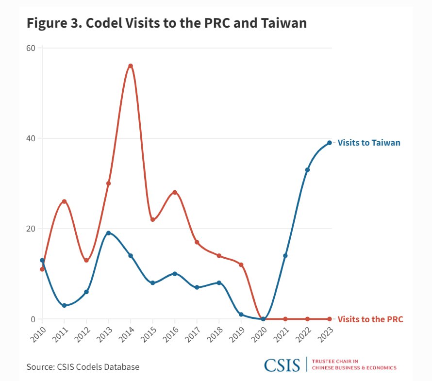 После COVID-19 состоялся всего один визит делегации Конгресса США в Китай. Раньше их было около 60 в год (на пике). Дипломаты и эксперты могут сколько угодно давать свои публицистические оценки динамике отношений между двумя странами, но этот график – лучше всякой публицистики.