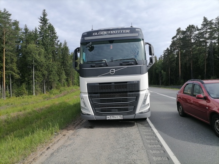 Как сообщили в отряде противопожарной службы по Олонецкому району, 13 июня в 8:11 на 299 километре трассы Кола столкнулись легковой автомобиль и фура марки Volvo.