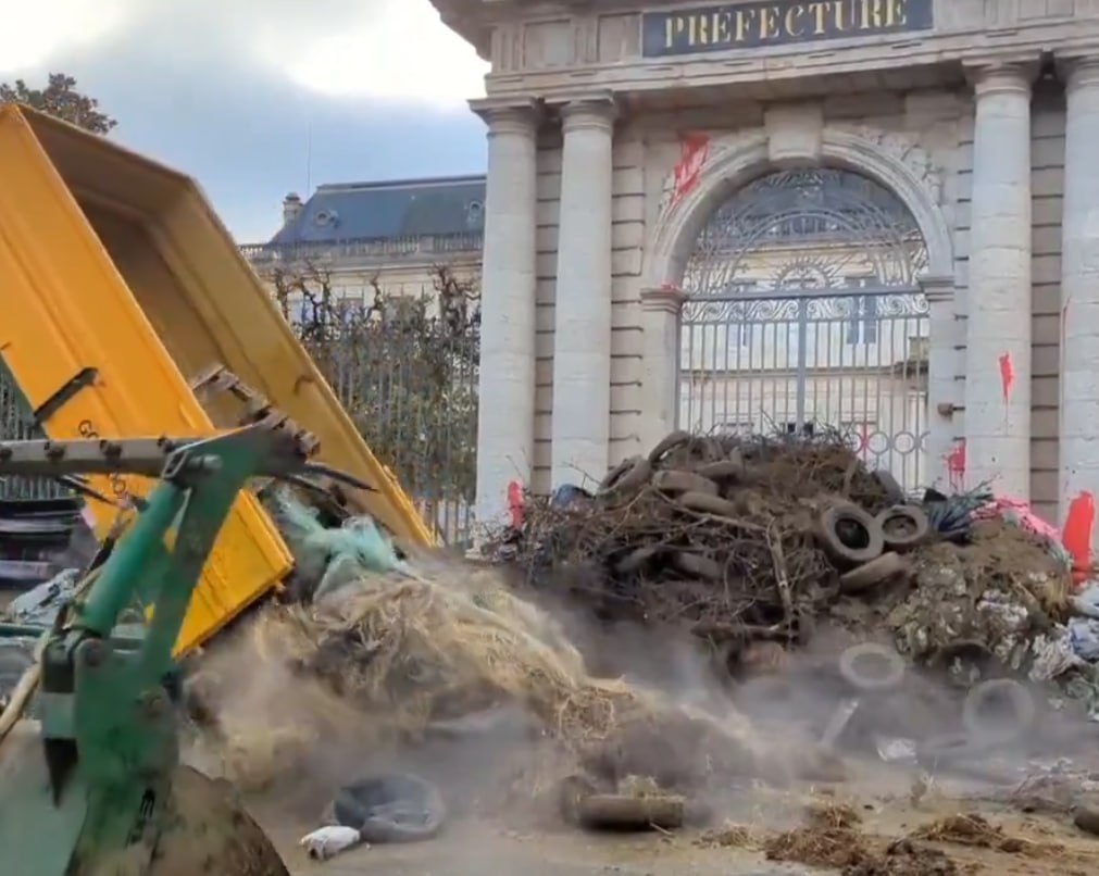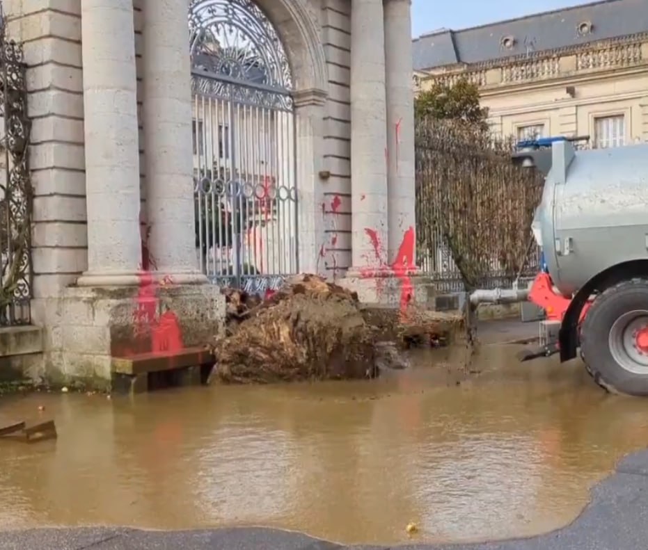 Французские фермеры завалили навозом и покрышками, а также залили кровью со скотобойни ворота префектуры Ажен.