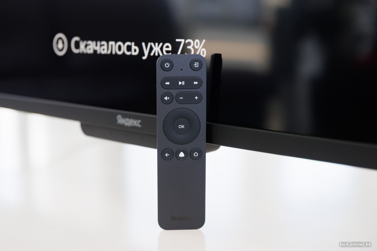 При первом включении телевизор предложил спарить пульт (базовые функции работают, судя по всему, и так по ИК), затем — подключить к интернет. Проще, если у вас установлено на смартфоне приложение «Дом с Алисой», но можно и вручную. Нам пришлось вручную из-за особенностей локального Wi-Fi, а потом — еще и несговорчивости того самого приложения. Затем пришлось идти пить чай — система обновлялась действительно долго.
