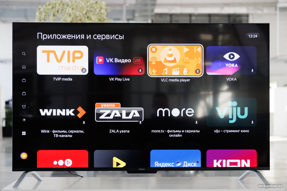Работает «ТВ Станция» на YaOS на базе Android. Фирменная «ось» нужна, среди прочего, для интеграции собственных сервисов, всевозможных умных алгоритмов улучшения картинки и звука, расширенной поддержки голосовых команд. Также можно устанавливать сторонние приложения, не только из магазина, а среди предустановленных — плеер VLC, если вы предпочитаете по старинке, с флешки.