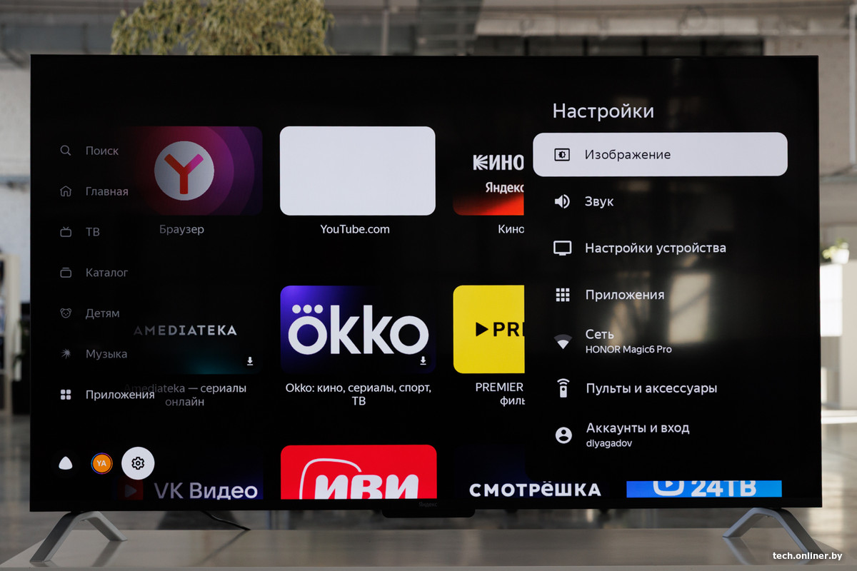 Картинка обычно яркая, сочная, углов обзора, яркости и контраста достаточно, однако некоторому контенту недоставало цветов — выглядело чуть блекло. Но стриминг стримингу рознь, и легко можно попасть на не самую качественную версию контента даже на популярных сервисах (при запуске достоверно качественного видео, повторимся, вопросов к цветопередаче, насыщенности и контрасту не было).