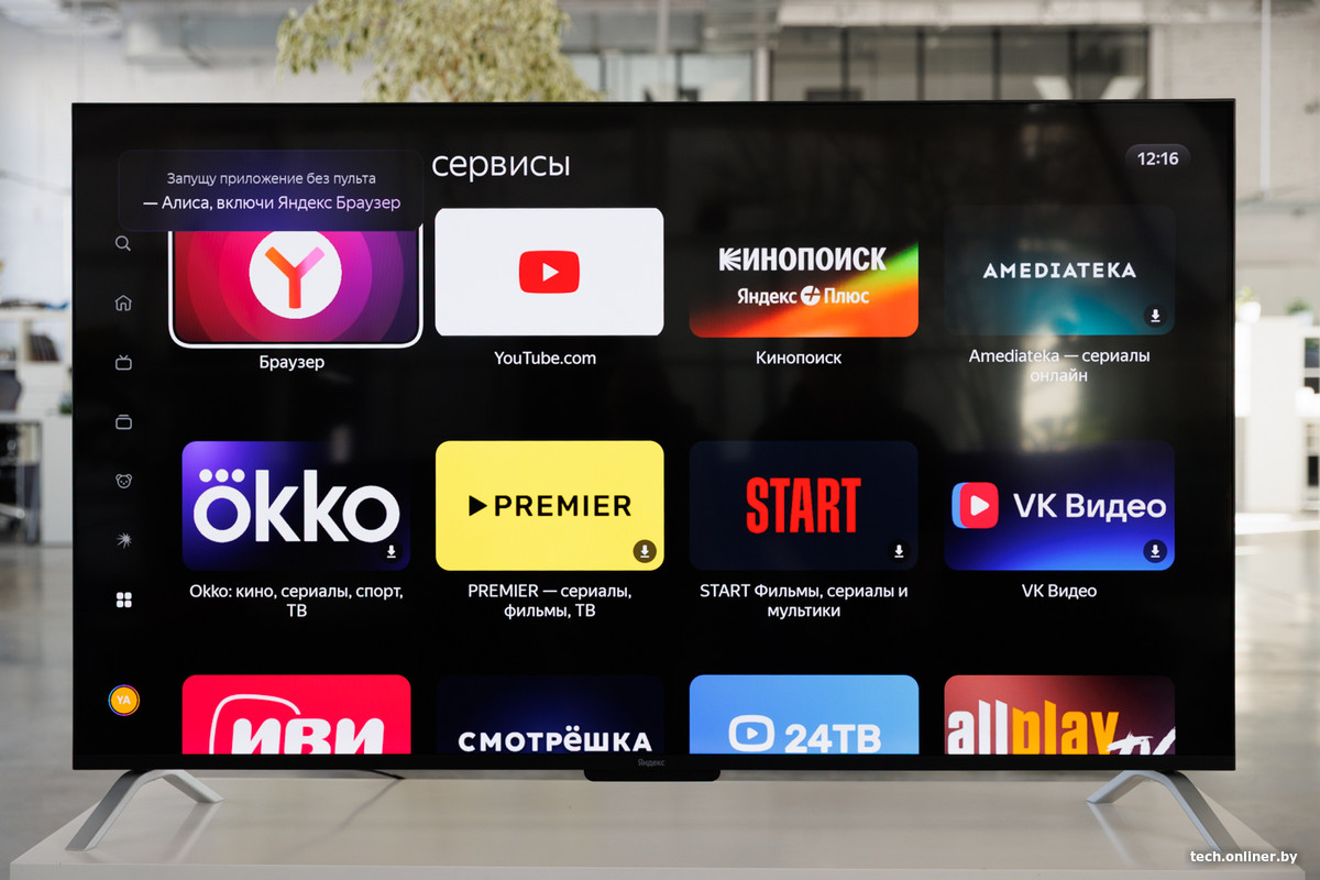 Для подачи голосовых команд использовать пульт не обязательно: достаточно «окликнуть» «Алису» и дать задание: «Какая погода завтра?», «Открой в браузере Onliner.by», «Запусти YouTube» (и другие приложения), «Включи музыку», «Найди кино Томми Вайсо» и так далее сколько хватит фантазии (понравилось, что сработал окрик «Замолчи» во время декламации прогноза — послушалась).
