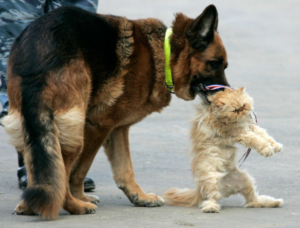 Итак, долгими разговорами и многочасовыми поисками в сети мы пришли к общему знаменателю: ситуация на фото не имеет ничего общего с настоящей подготовкой собак для службы в полиции. Да и вообще ни к какой службе или работе эта картина подготовить не сможет! "Проверка кошкой" не встречается ни в одних официальных правилах дрессировок собак. А их видов, как минимум, штук 20!