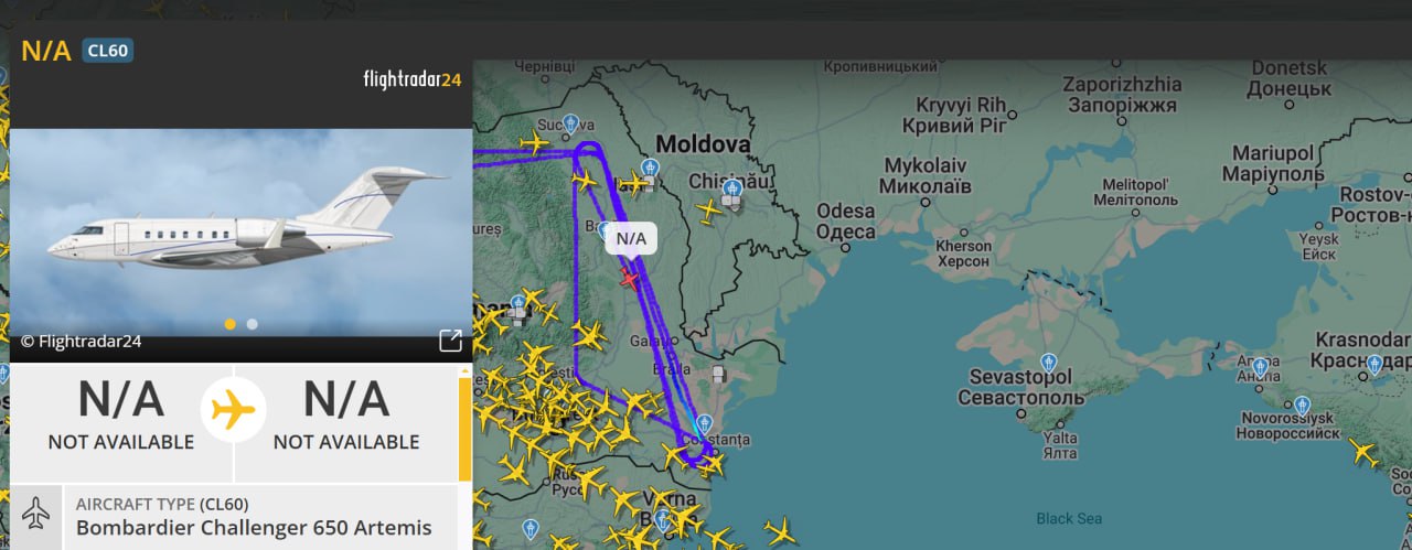 Сегодня в "смене" над Черным морем — американский самолёт-разведчик Bombardier Challenger 650 Artemis, который работает в интересах Киева.