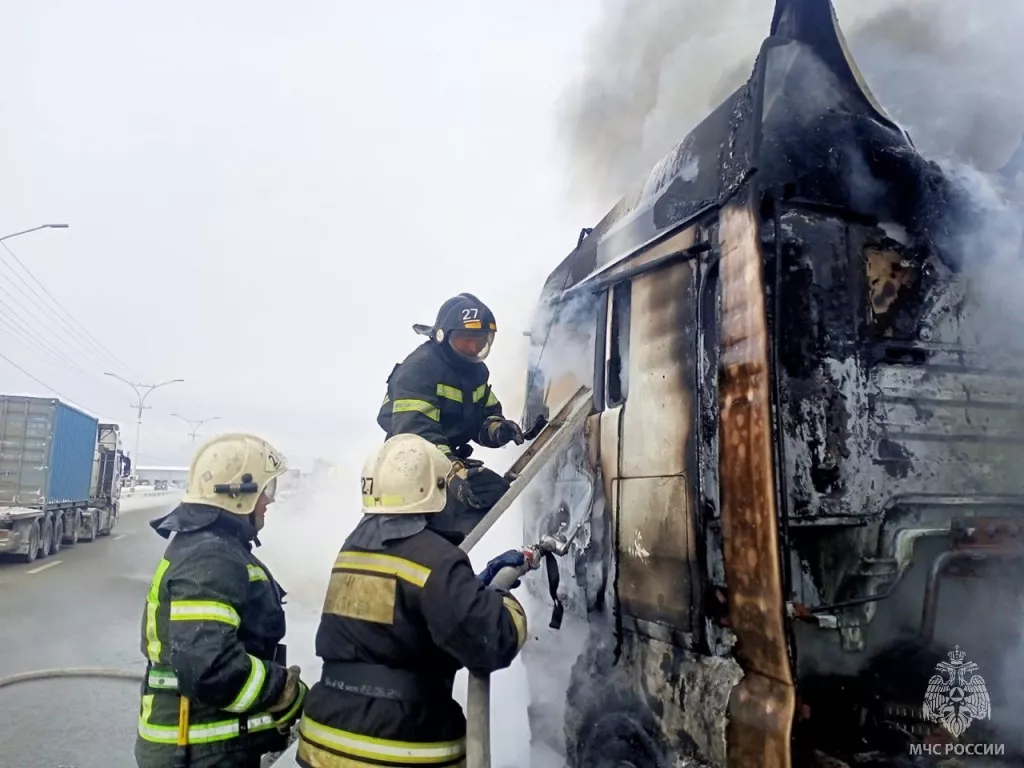 Пожар ликвидирован. Повреждена кабина транспортного средства. Пострадавших нет.