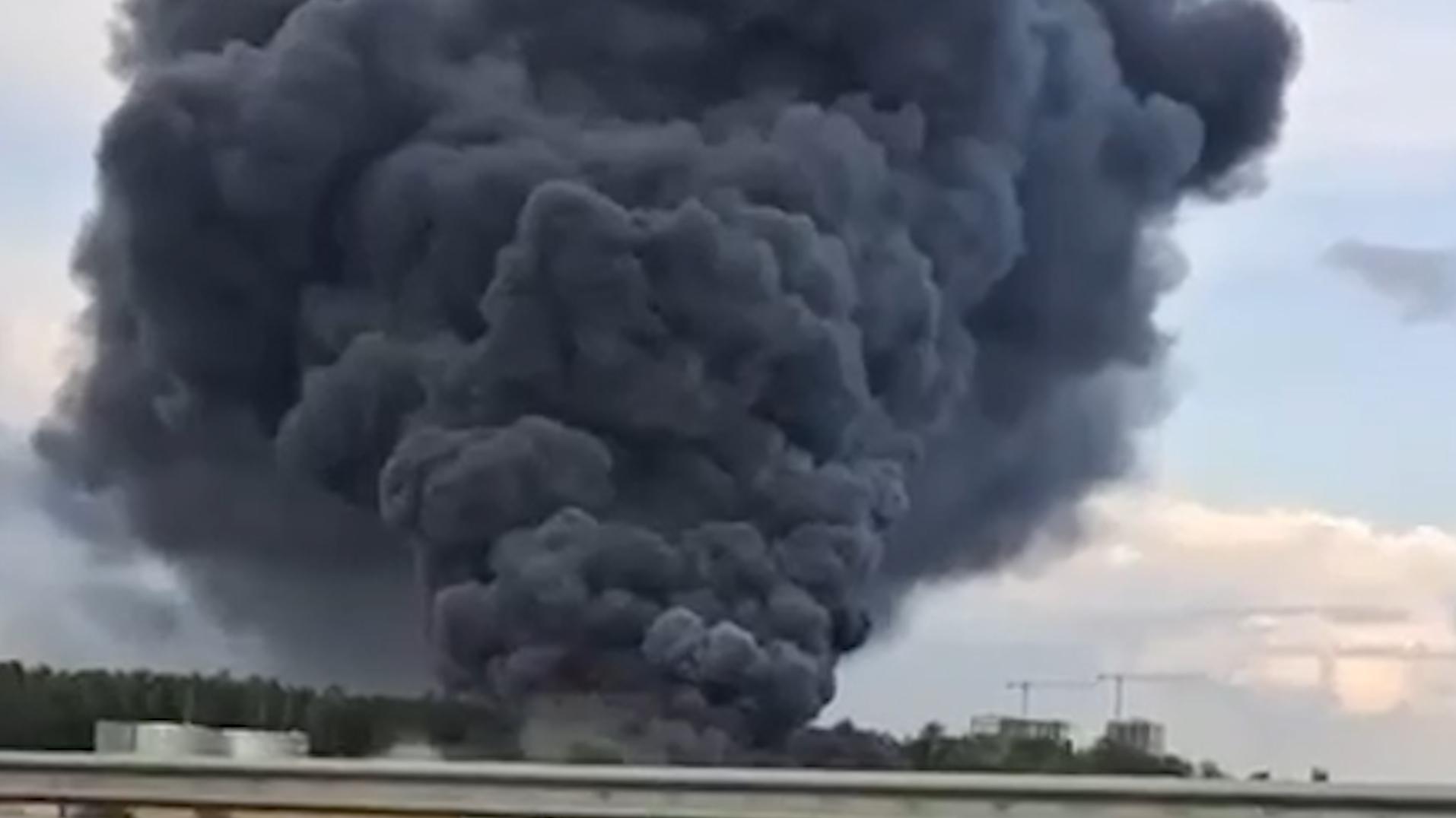 В пресс-службе МЧС России РБК сообщили, что предварительная площадь составляет 8,1 тыс кв.м. На место следует лаборатория по замеру воздуха на предмет превышения ПДК (предельно допустимой концентрации).