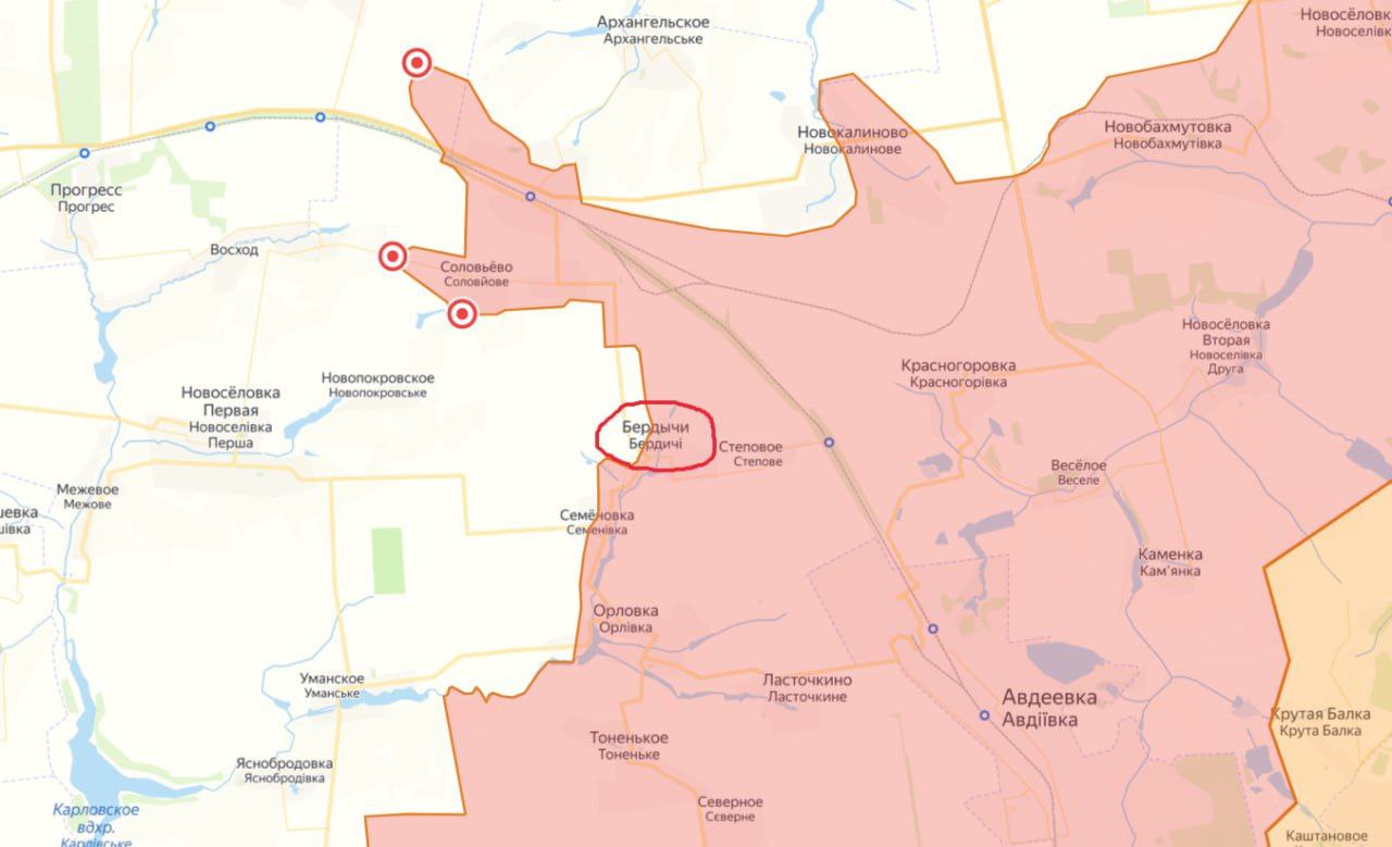 Российские военные полностью зачистили от ВСУ населенный пункт Бердычи на авдеевском направлении
