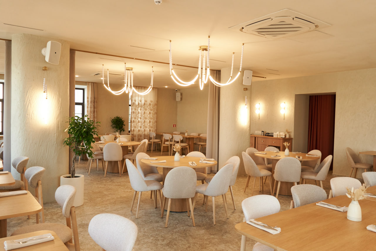 Второй этаж — светлый, уютный и с большими окнами. Он оборудован всем необходимым для комфортного отдыха гостей. Здесь есть молельная комната, детская игровая зона и отдельная VIP-комната для камерных мероприятий. Просторный зал легко трансформируется под банкет или праздничный ужин, а интерьер наполнен теплом и уютом.