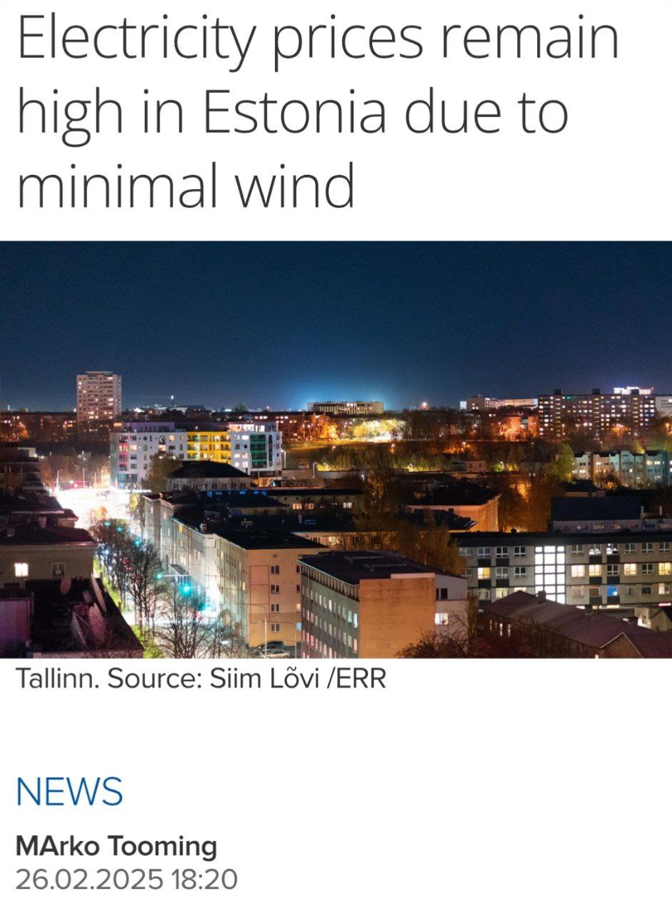Электроэнергия в Эстонии в феврале была в два раза дороже, чем в том же месяце прошлого года. В Эстонии обвиняют ветер и солнце в высоких ценах на электричество, которые на максимумах четвертую неделю подряд.