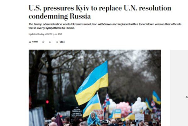 Киеву предложено не перекладывать вину на Россию, а также заменить данную резолюцию на заявление, которое будет призывать к прекращению конфликта. Об этом сообщает The Washington Post.