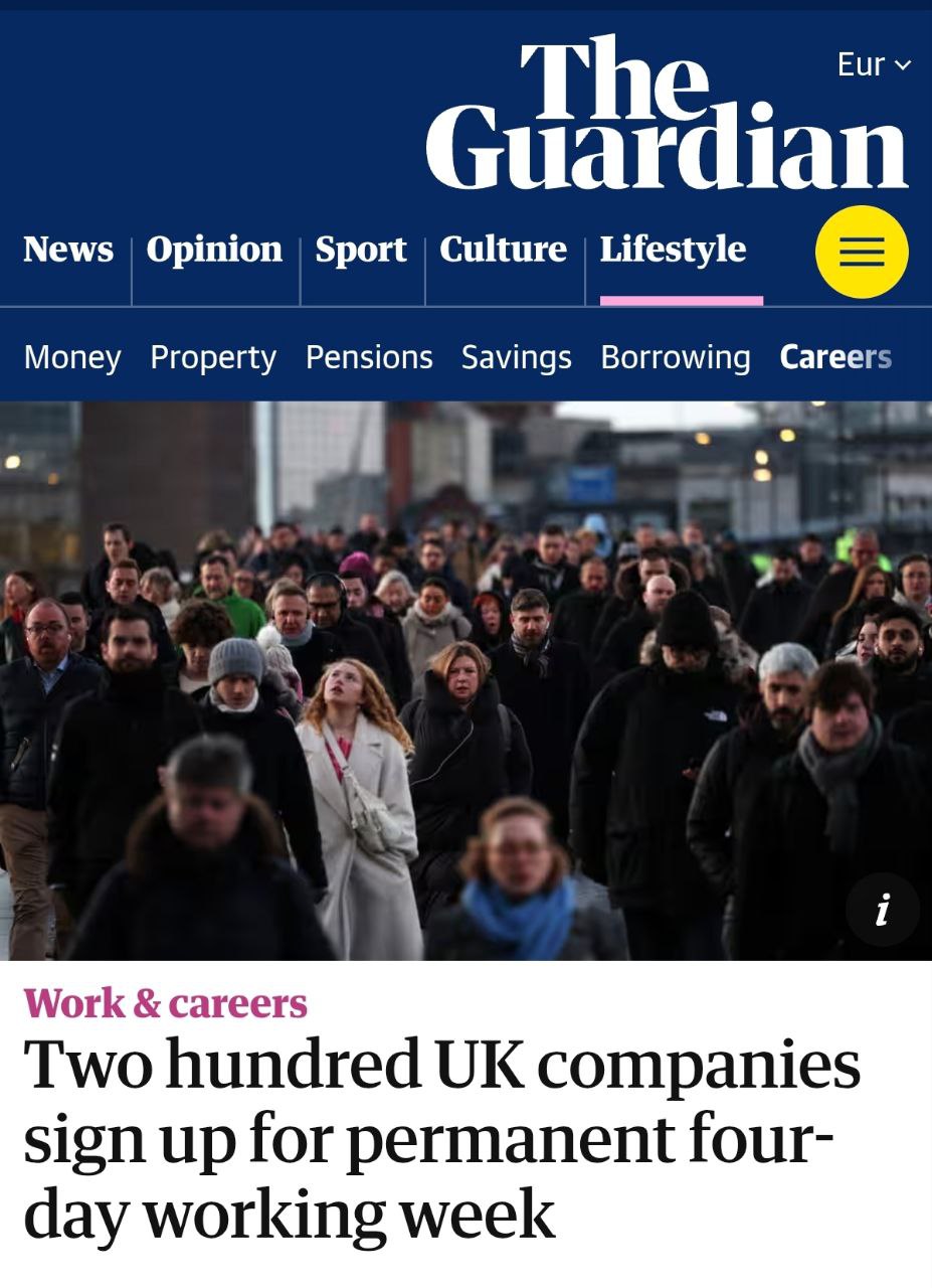 200+ компаний в Британии переходят на 4-дневную рабочую неделю: эксперимент доказал, что исключение одного дня несёт только (!) плюсы.