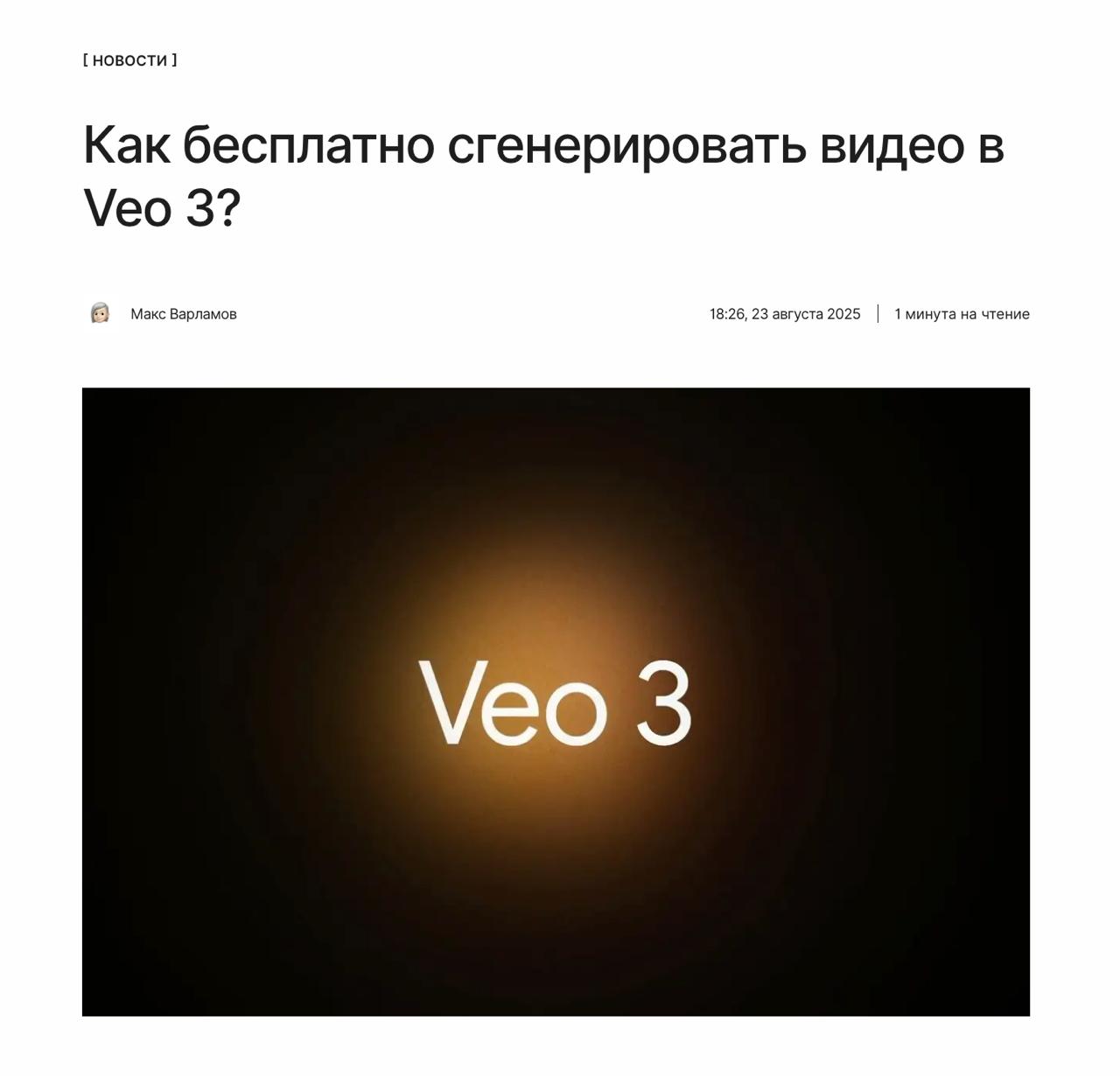 Google разрешила генерировать 8-секундные видео со звуком в Veo 3 бесплатно.