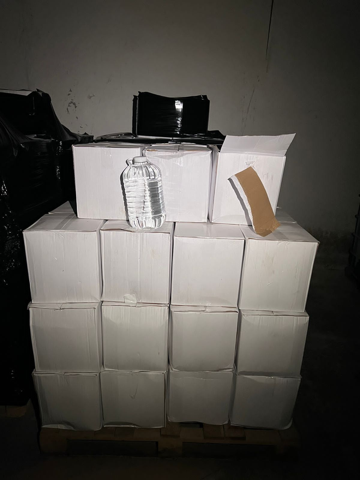 Кустарный цех находился на территории птицефабрики в Кипенском сельском поселении. Алкоголь производили в полуподвальном помещении. После обыска и досмотра двух грузовиков полицейские изъяли около 75 тонн суррогата, часть из которого уже была разлита по бутылкам с этикетками отечественных брендов водки. Там же правоохранители нашли поддельные акцизные марки.