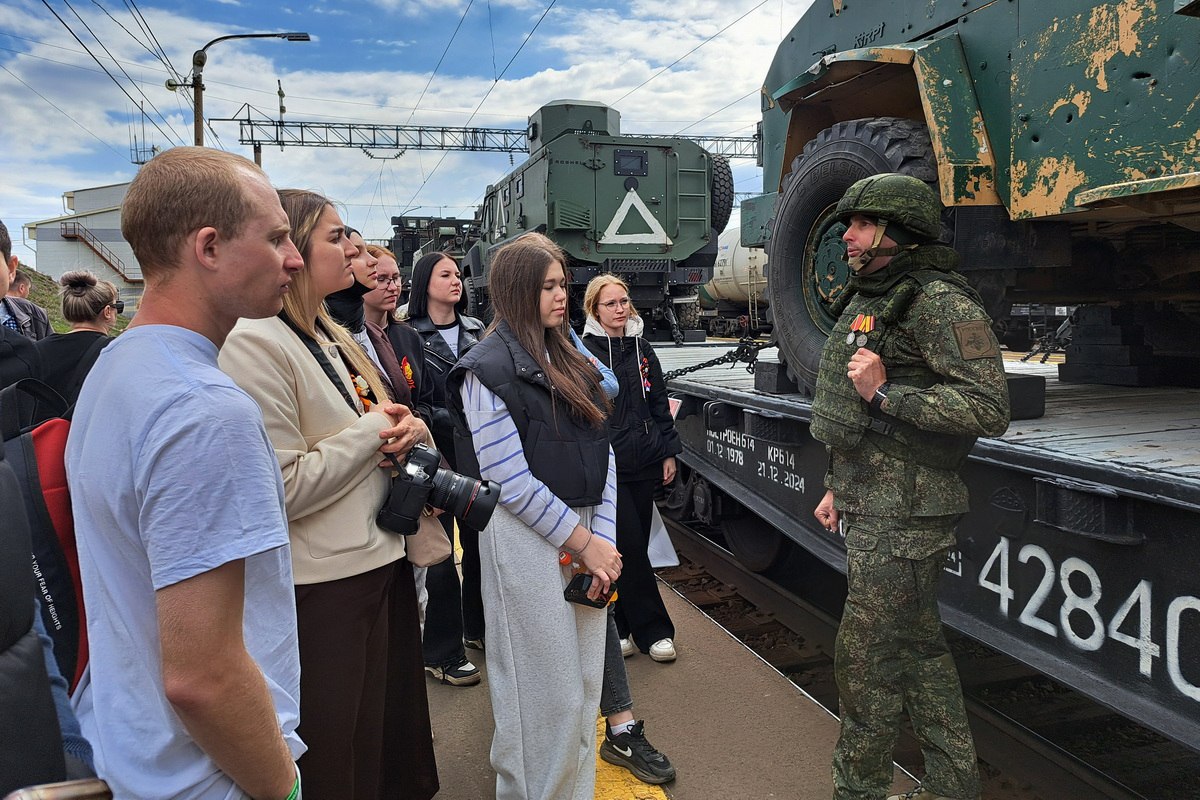 🚂 Поезд представляет собой передвижной музей, состоящий из восьми тематических вагонов с экспозициями, где представлены не только образцы техники времён Великой Отечественной войны – танки, гаубицы и пушки, но и современное вооружение. Среди экспонатов – рассекреченные архивные документы времён ВОВ. В составе также четыре железнодорожные платформы с образцами трофейной техники, захваченной российскими войсками в ходе СВО.