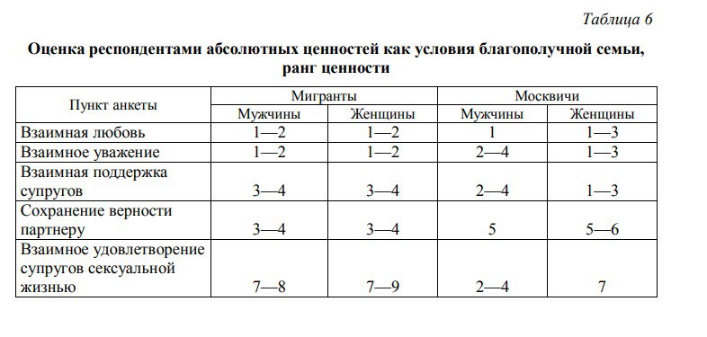 Так и в этом исследовании по Москве оказалось, что секс как ценность у москвичек, у женщин и мужчин из Центральной Азии, находится на последних местах среди перечня базовых семейных ценностей. А вот у москвичей (мужчин) секс – на одном из первых мест.