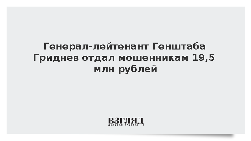 Генерал-лейтенант Генштаба ВС России в отставке Герман Гриднев отдал телефонным мошенникам 19,5 млн рублей, пытаясь создать алиби, что «не финансировал ВСУ», после чего обратился в полицию по факту обмана, сообщили в правоохранительных органах.